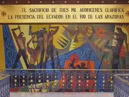 Encontramos un mural realizado por el Maestro Oswaldo Guayasamín, uno de los más importantes artistas que ha tenido el Ecuador. Esta obra representa el descubrimiento del río Amazonas. Donde tenemos al Cap. Francisco de Orellana y a Gonzalo Pizarro, partiendo desde Quito, en busca del País de la Canela con cerca de 200 españoles y aproximadamente 3000 indígenas y un número similar de animales en marzo de 1541, los españoles atraviesan la cordillera oriental de los Andes del actual Ecuador, y encuentran una gran selva, donde avanzan por el río napo, el 12 de febrero de 1542 sucede lo insolito desembocan en un río gigantesco al cual le bautizan como rio de la Amazonas debido a que en un punto fueron atacados por una tribu de mujeres guerreras a las cuales relacionaron con las Amazonas pertenecientes a la mitología Griega, Orellana desembocando en el Océano Atlántico en agosto de 1542 que posteriormente retornó a tierras ibéricas a informar a los reyes católicos del gran hallazgo.